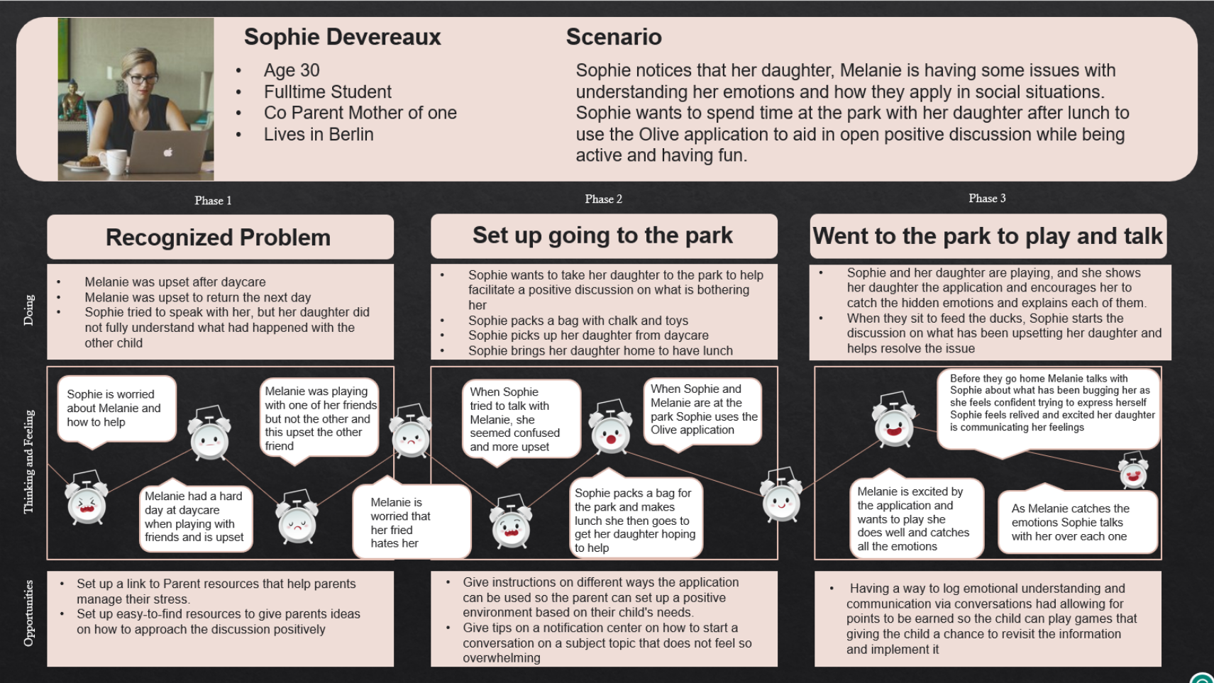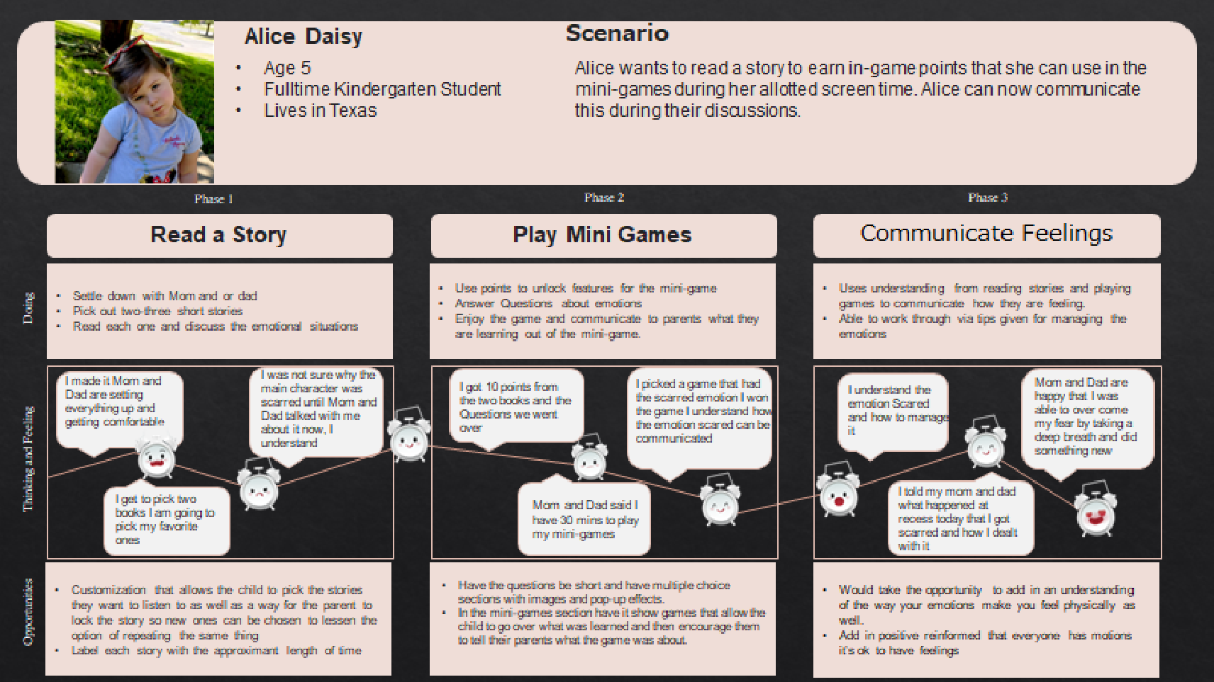 In looking at the user Journeys and Flows, we have a commonality aid in emotional growth and communication as well as being fun and easy to use while achieving a goal in the most logical steps