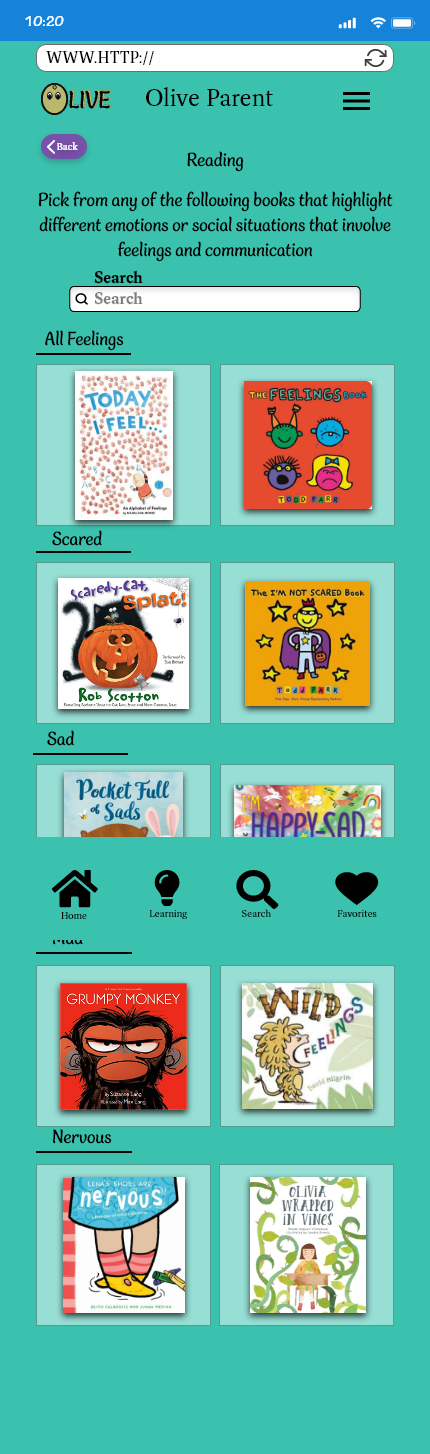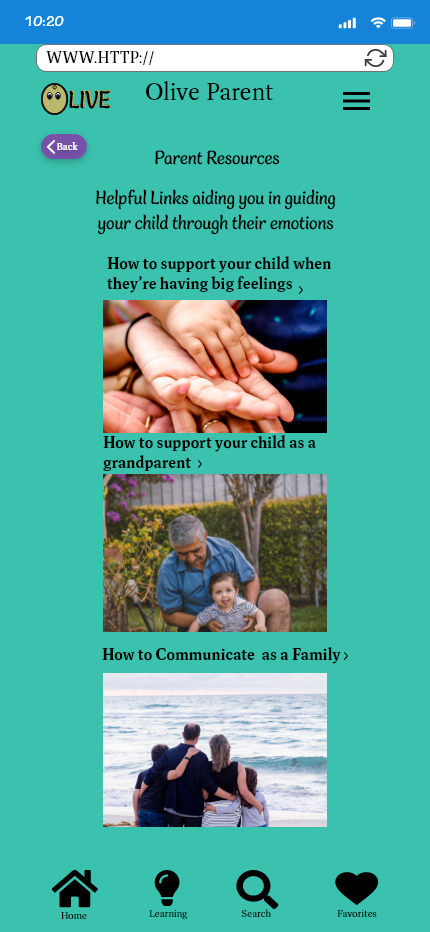 The final flow that we have is the parent resource. Instead of a coming soon section this allows a parent to gain further knowledge and external resource support for emotional understanding guidance.