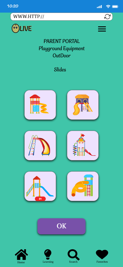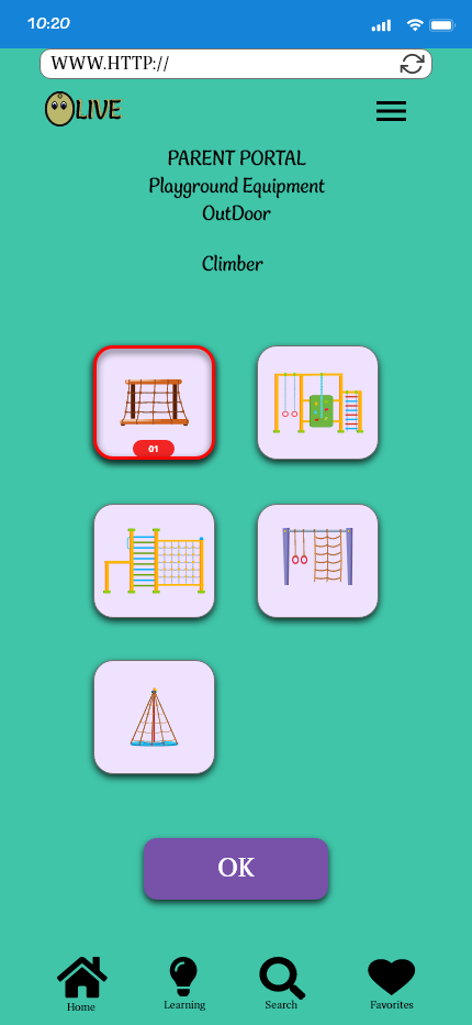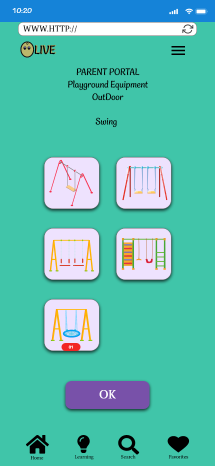 From the home page and selecting the parent portal, we are looking at the learning path page. When adding in more detail, I focused on an organized book layout, and instead of having a questions section it will simply be up to the parent to ask follow-up questions that will be relatable to each child based on the book content.