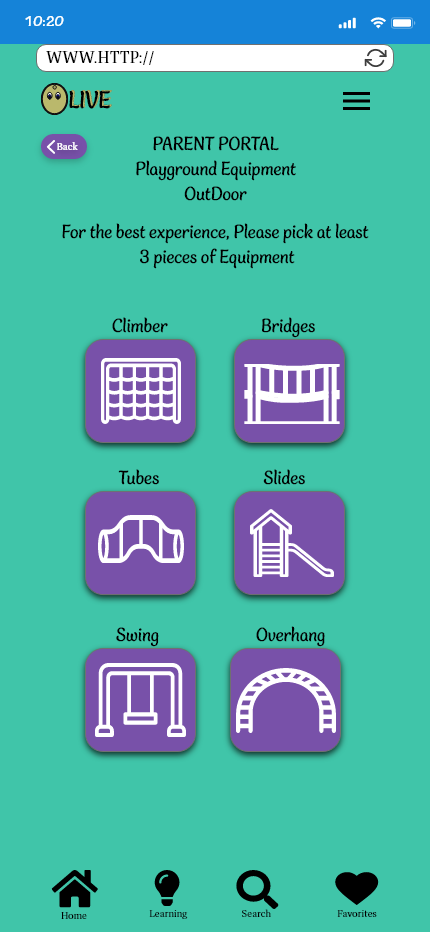 I will be seeking 6 test participants, I will be recruiting participants via my network of friends, family, and colleagues. I will be looking at the number of children aged 2-5 in the home, if they are single parents or co-parents, how much learning time with their child/ren they have and how is that spent reading, playing games, or physical activity? This will all be useful as the ability to utilize the application depends on the parents to be able to work with their child/ren. Testing took place between May 5, 2023, and May 14, 2023