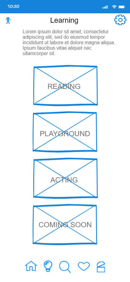 possible solutions. We defined flows for the 3 core learning features for the MVP: Playground, Reading, and Minigames."