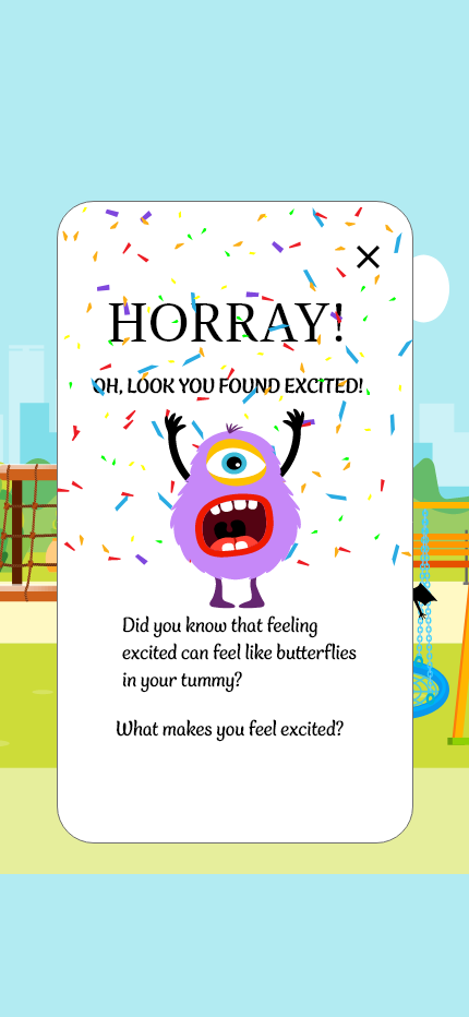 Moving forward in the learning path, we have the playground learning. This takes a game and physical approach to understanding emotions as the child will be tasked with finding hidden emotions that, once found, the parent can discuss the emotion.